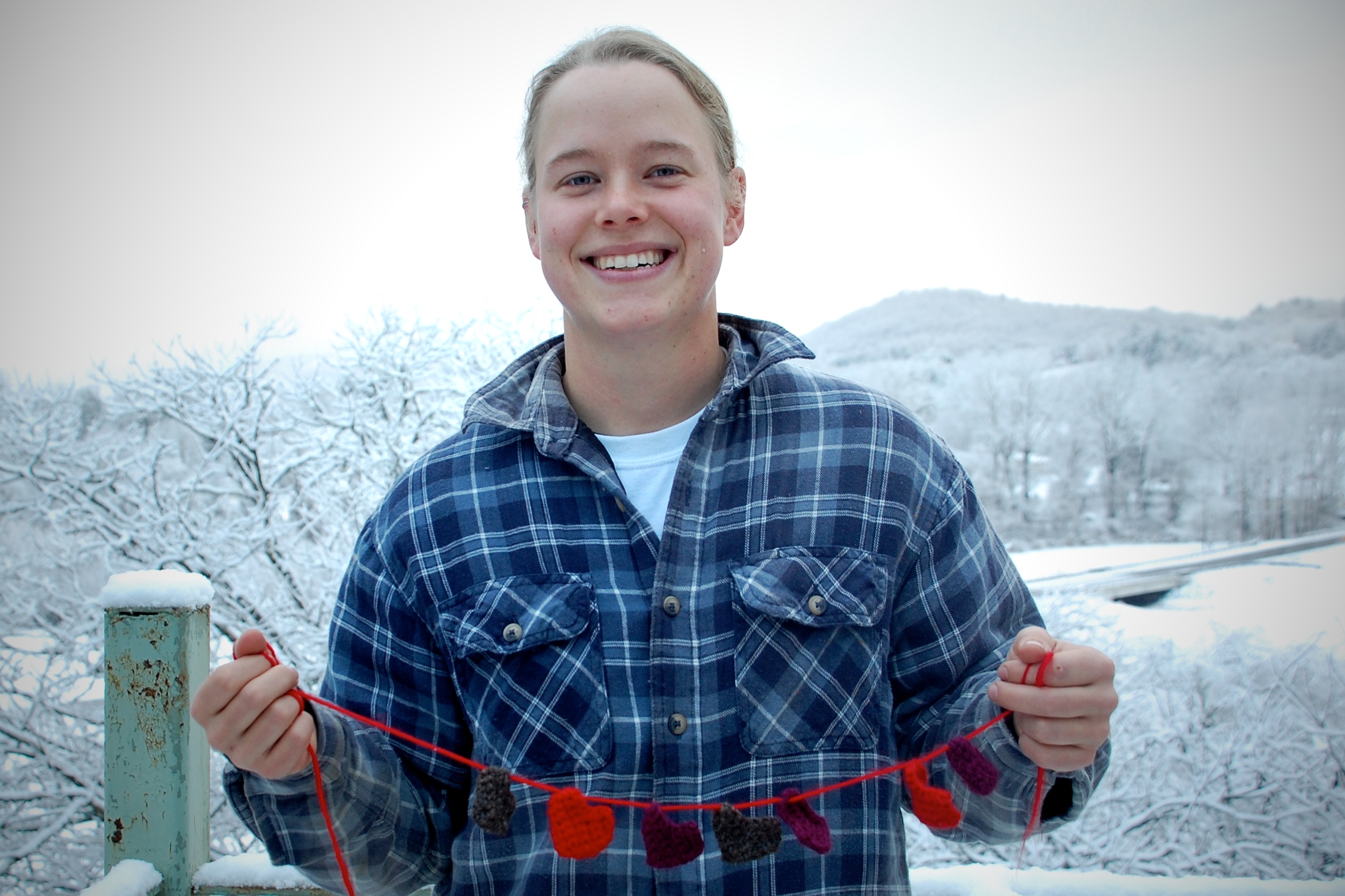 Christine: I crocheted a heart garland to send to my girlfriend Cory for Valentine’s Day. She’s in Massachusetts. And I am here. It’s cheesy, I know. But they are handspun!