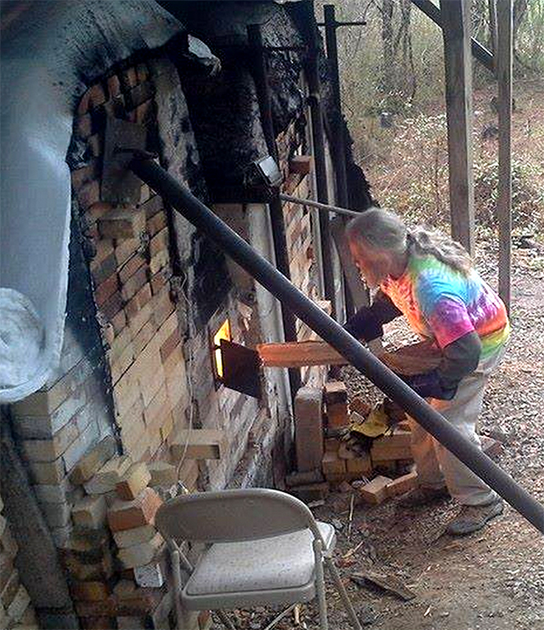 RW: Oh we had a wonderful class! We had 11 students and Darrell Adams came and his grandpa was Bill Gordy a famous Folk Potter. I just love Darrell and it’s a pleasure to hand out with him for a week, He’s just a world of knowledge. He brings his ball mill and makes glaze out of rock. It was just a great firing we had. Evan Allhands was in that class and then we came over here and we loaded this one. I’m already excited to fire up the next one. I just cna’t get enough of it.