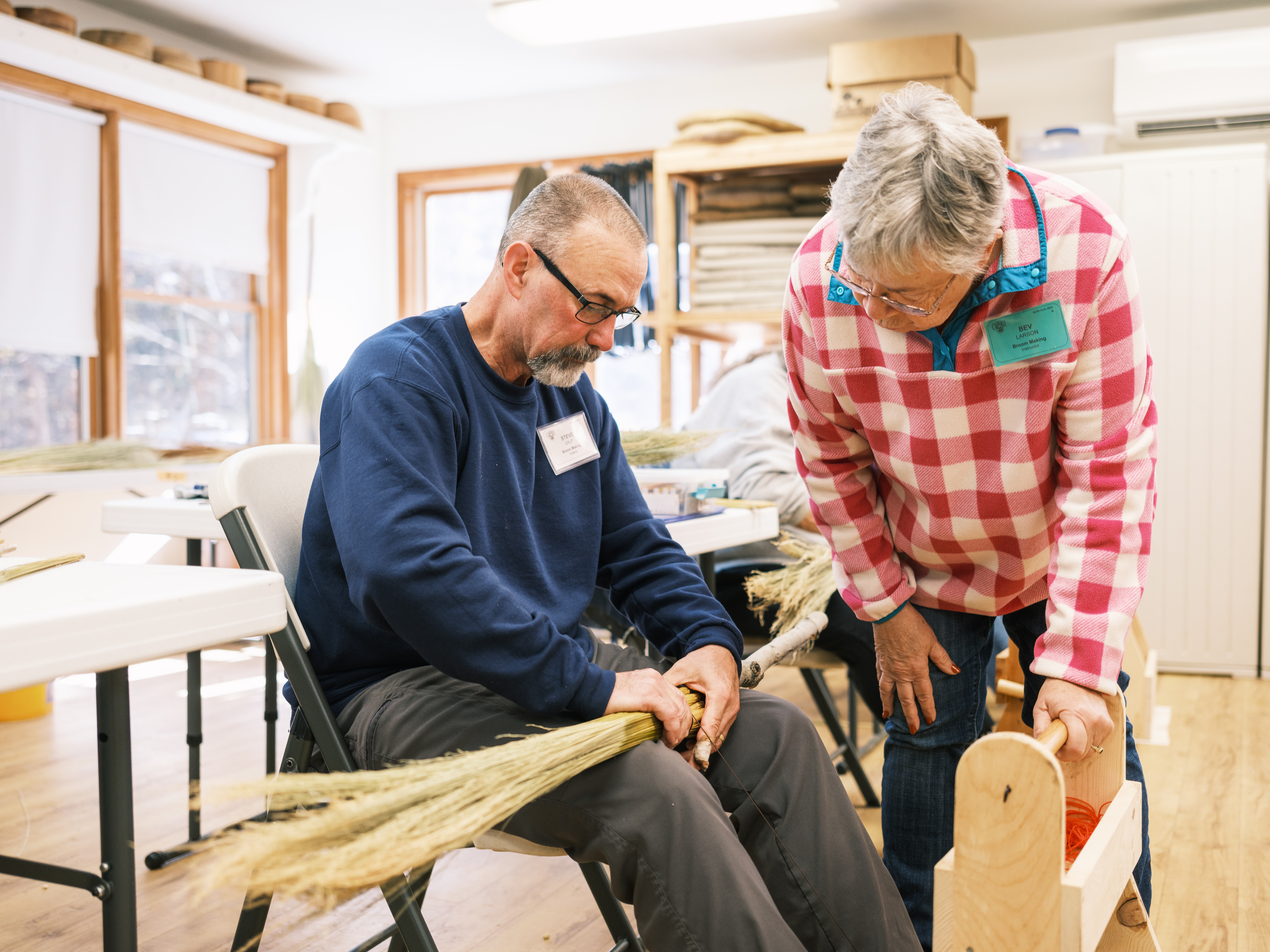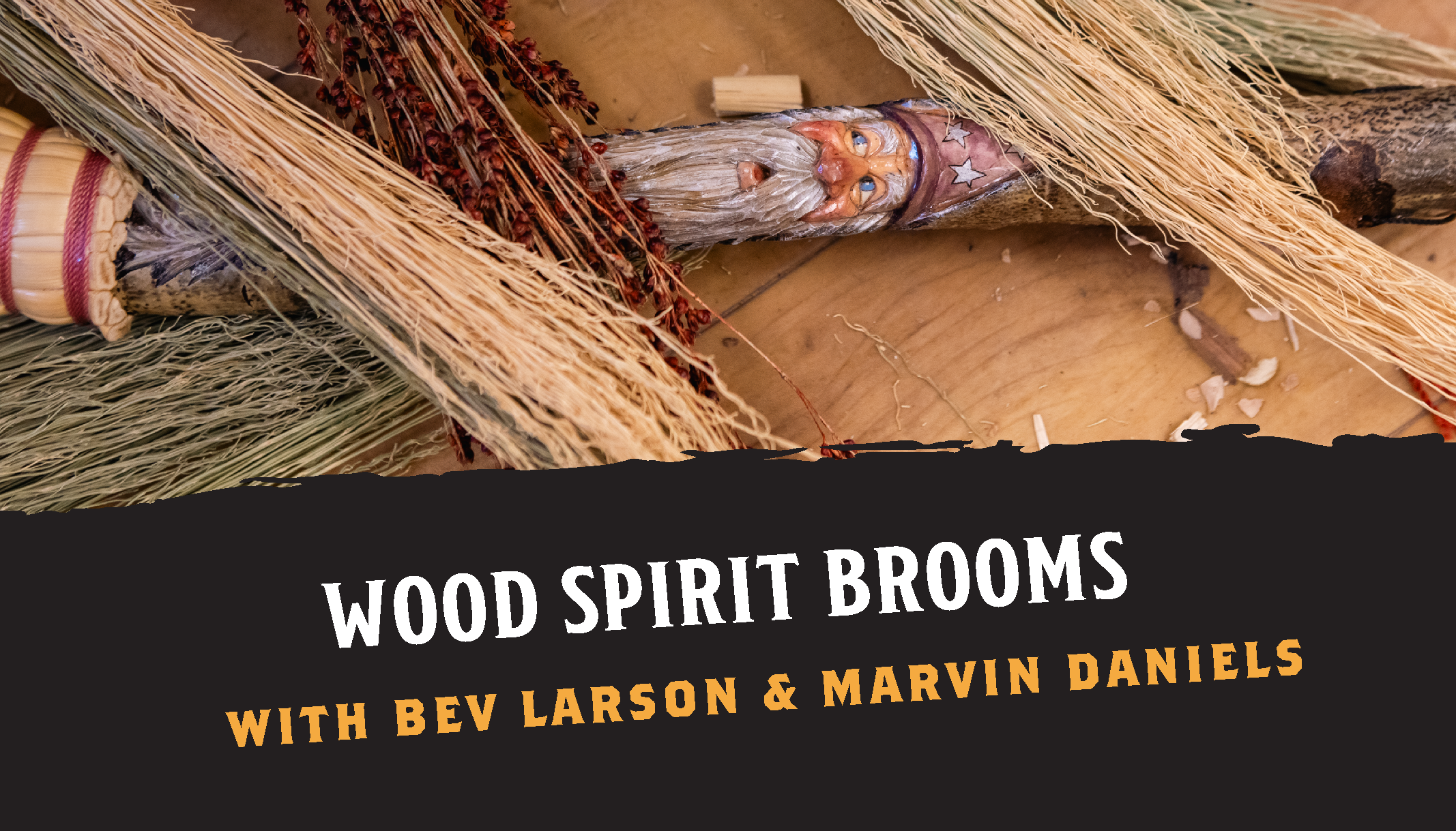 Join instructors Bev Larson and Marvin Daniels as you explore the craft of woodcarving and broom making. Students will learn to transform wooden sticks and spend the first few days of class learning carving techniques, woodburning, and staining handles. The final part of the class focuses on the art of broom making, turning the newly carved and finished handle into a cobweb broom using sorghum straw.