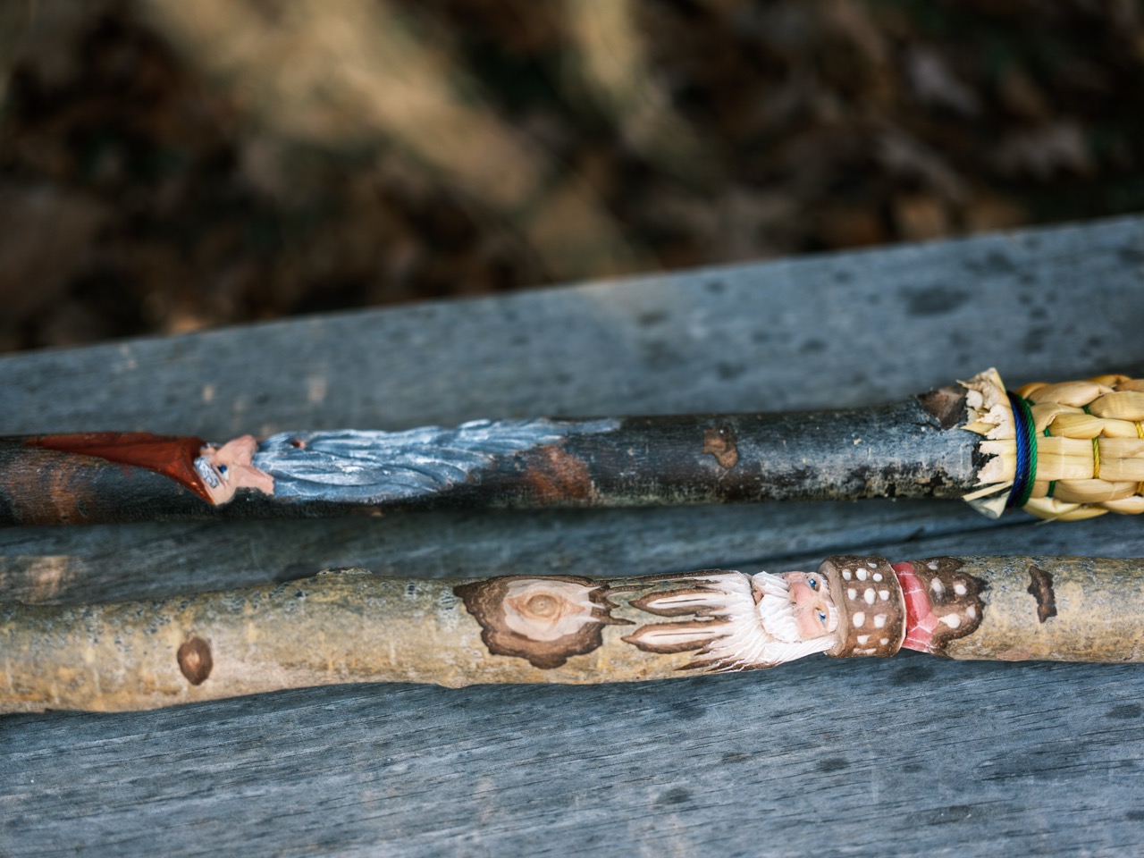 BL: The brooms are made primarily of broomcorn, cord, and sticks. Because we carve the handles ourselves, inspiration for each broom comes directly from our carvings. We then use acrylic paint to bring the designs on our handles to life.