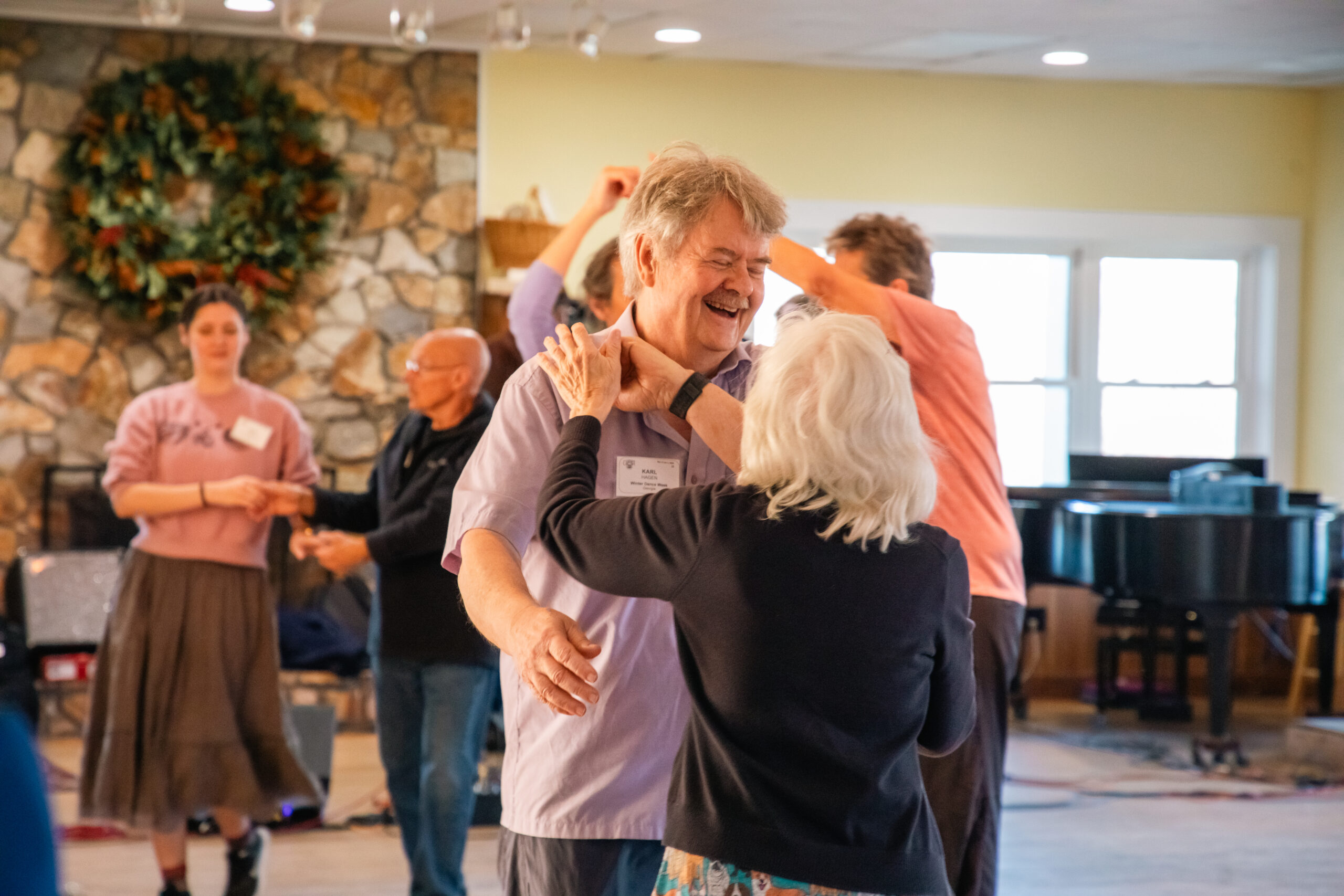 In the Davidson Hall Music Studio, participants learn and groove in front of live music. From English Country Dance to Tai Qi at teatime, the room is always filled with the energy of bright-eyed dancers learning and experiencing the music together.