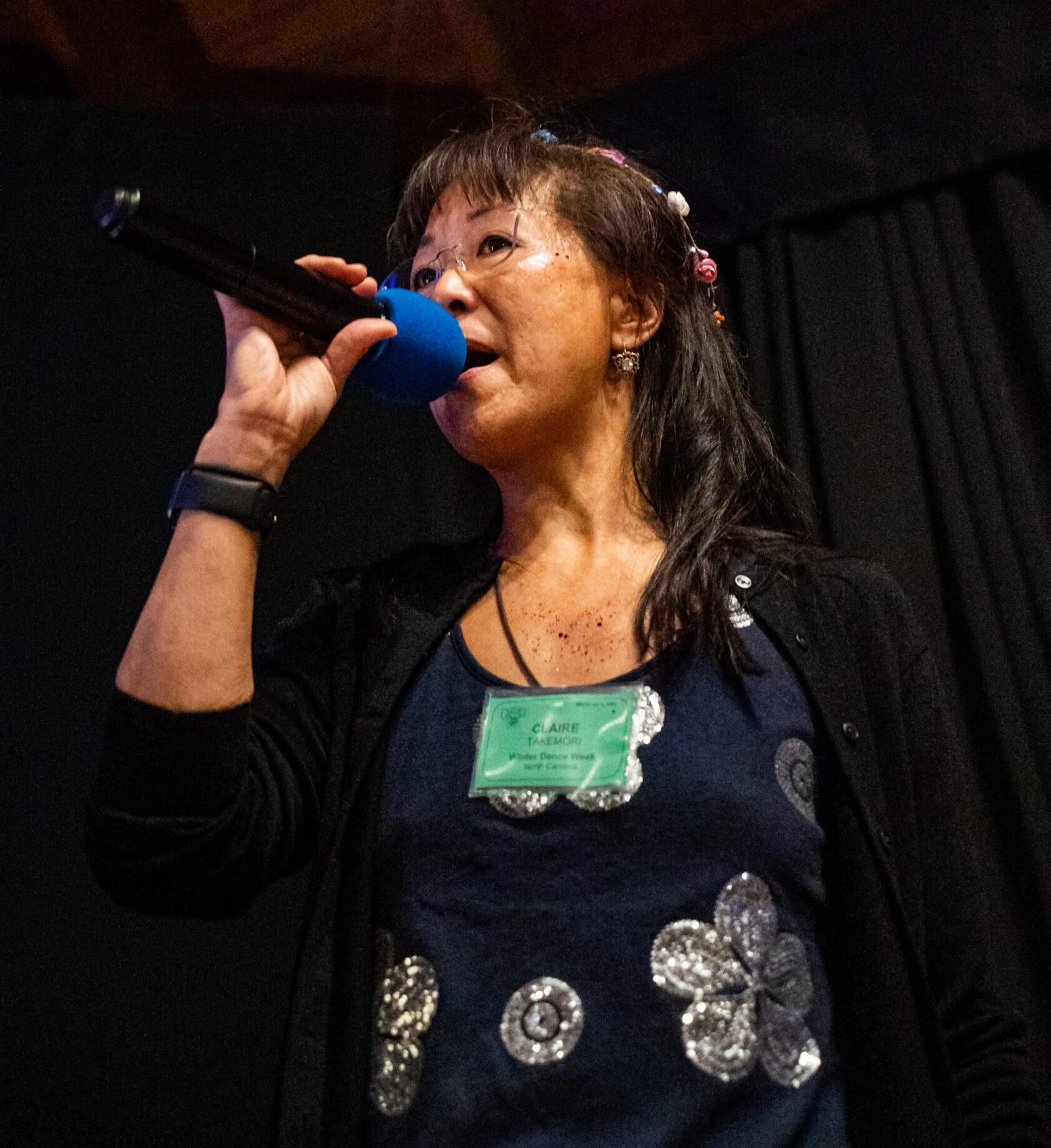 Music & Dance Programs Coordinator Wendy Graham addresses the dancers at the NYE dance, sharing stories and compassion before the weeks end.