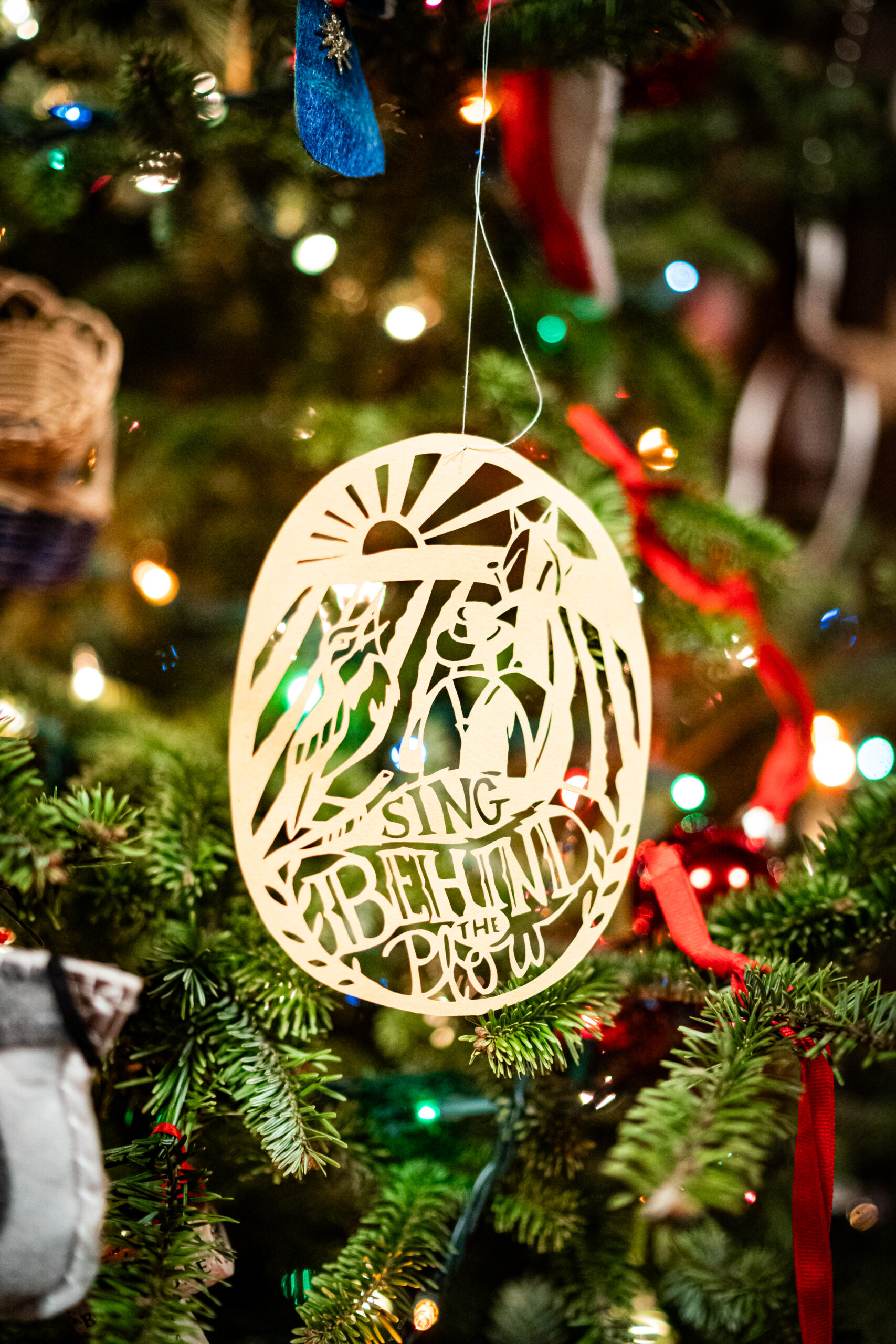Entering the Keith House, one is welcomed by warm tunes and stomping of feet. The scent of cedar wafts from a tree dawning a handmade paper ornament, displaying the Folk School’s sentiment: “I sing behind the plow.”