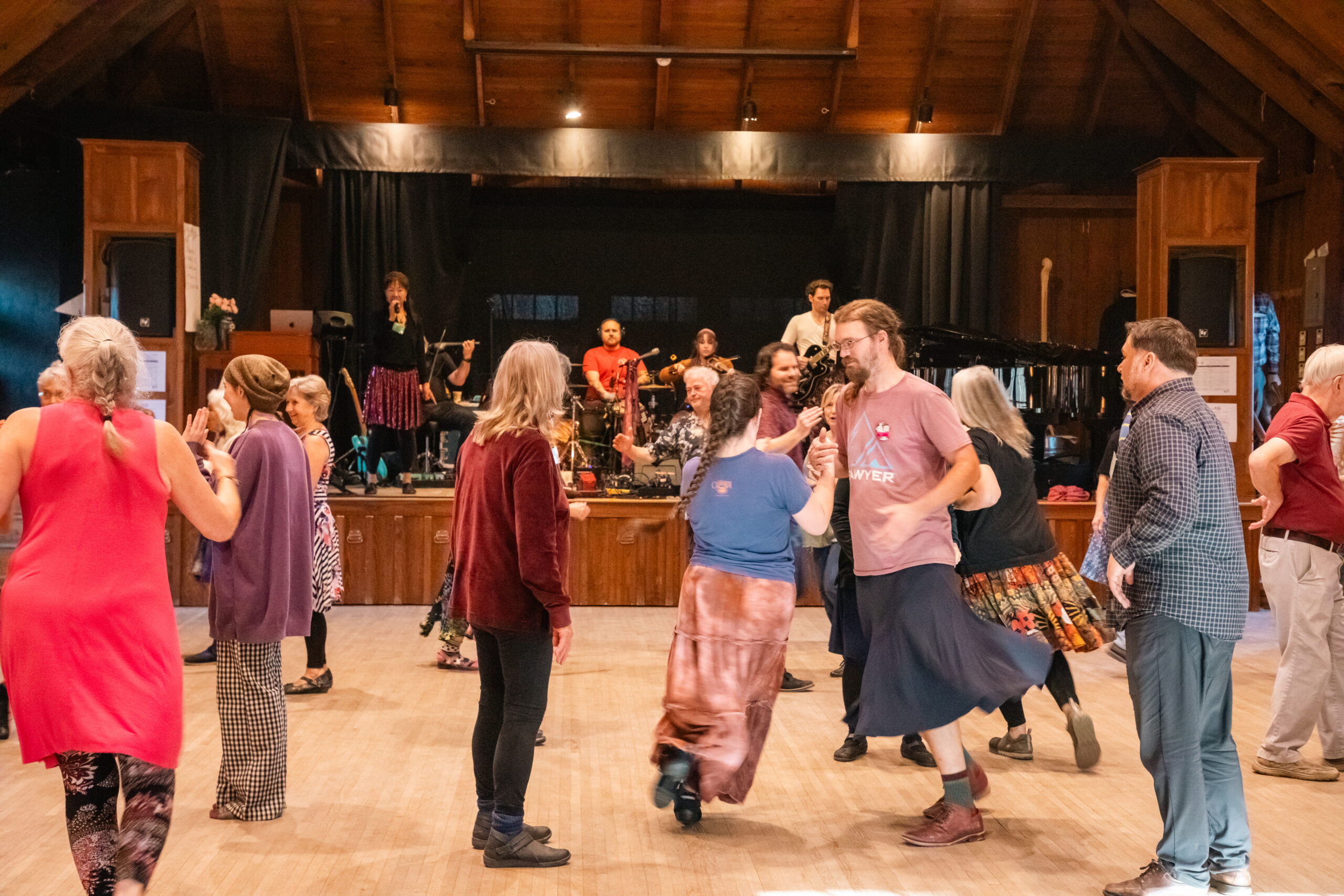 Community and synchronicity flowed through the folk tunes and the steady stomp of feet, wrapping the room in musical unity. At weeks end, everyone gathered for a final evening shuffle and a goodnight song, sending one another home with a sense of serenity and compassion.