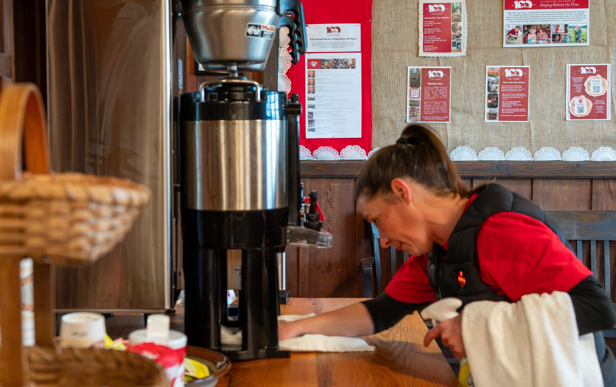 Maintaining and organizing this operation is Housekeeping Supervisor Connie Britt, who has been a part of the Folk School team for nearly 8 years. Often found inventorying linens and responding to work orders, her primary responsibility on campus is making folks feel cared for, even if their paths never cross.