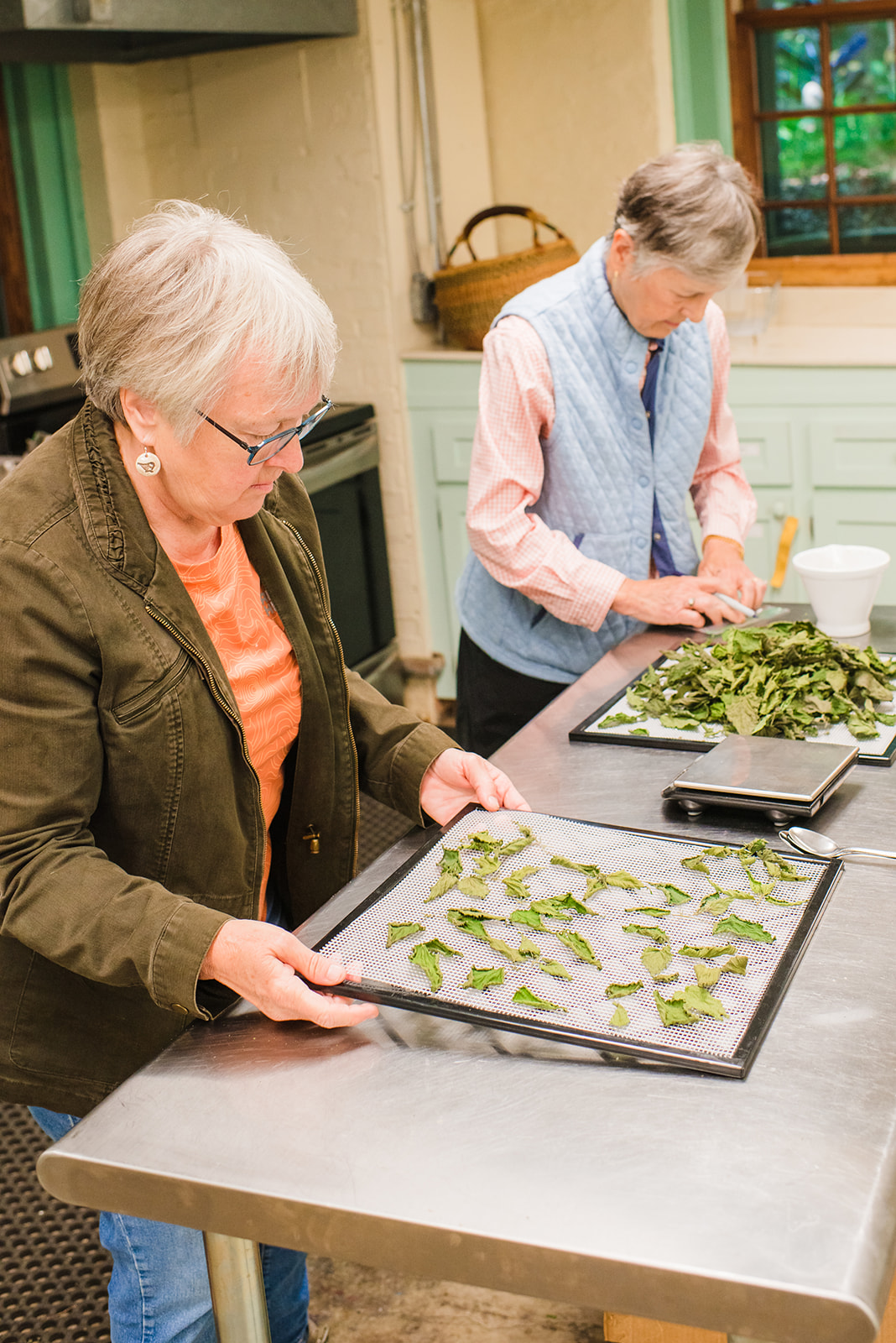 Students are preparing the herbs for drying.