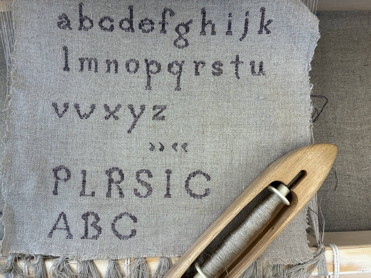 SN: I’ve been a weaver for almost 35 years, and have been teaching weaving for more than thirty years. My teaching has included many classes for beginning weavers, as well as advanced classes for experienced weavers. My class at the Folk School will focus on using inlay to weave words into cloth. It is based on my forthcoming book, Weave with Words: Using Inlay to Create Text in Woven Cloth, to be published by Schiffer Craft in July, 2026. It’s an exciting topic for me, because I’ve been an avid reader throughout my life, and weaving words into cloth gives me a way to express my admiration for books and stories while weaving.