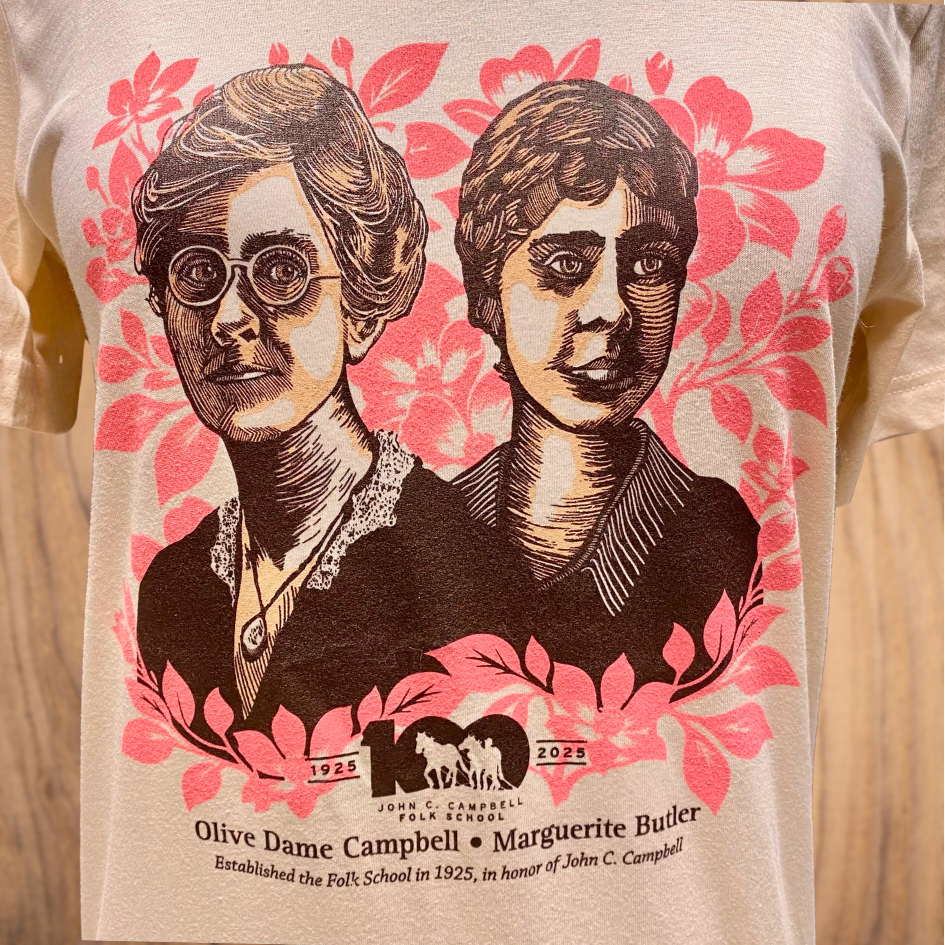 As part of our 100th anniversary, we’re honoring the incredible women who helped build the folk school—Olive Dame Campbell and Marguerite Butler Bidstrup—with a beautifully designed, limited-edition T-shirt. This historic T-shirt is made from 100% cotton and available in sizes XS–3X.