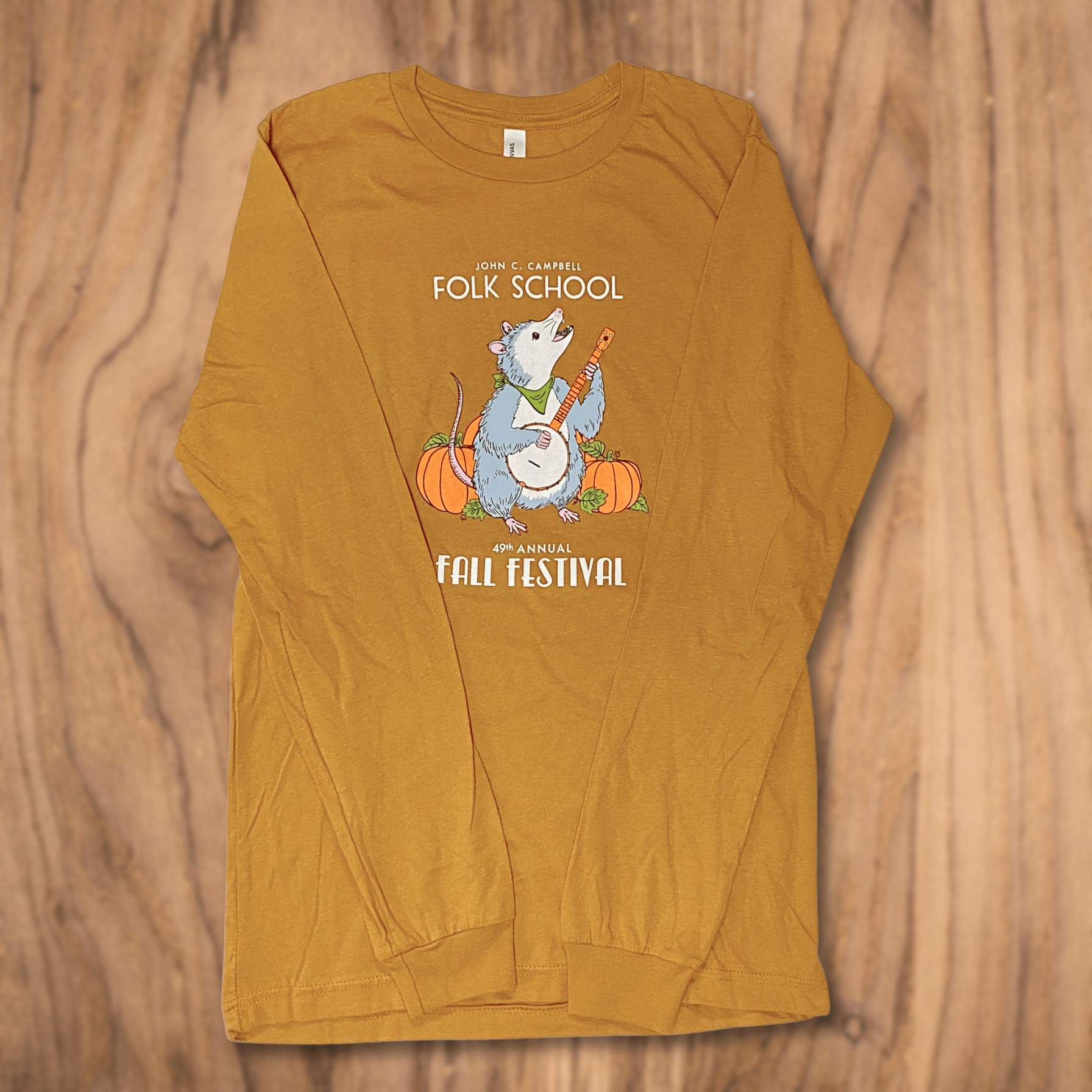 The cute banjo-playing opossum is sure to be a hit! These Long-sleeve shirts are unisex, 100% cotton and are offered in three different color options – black, toast and Carolina blue.