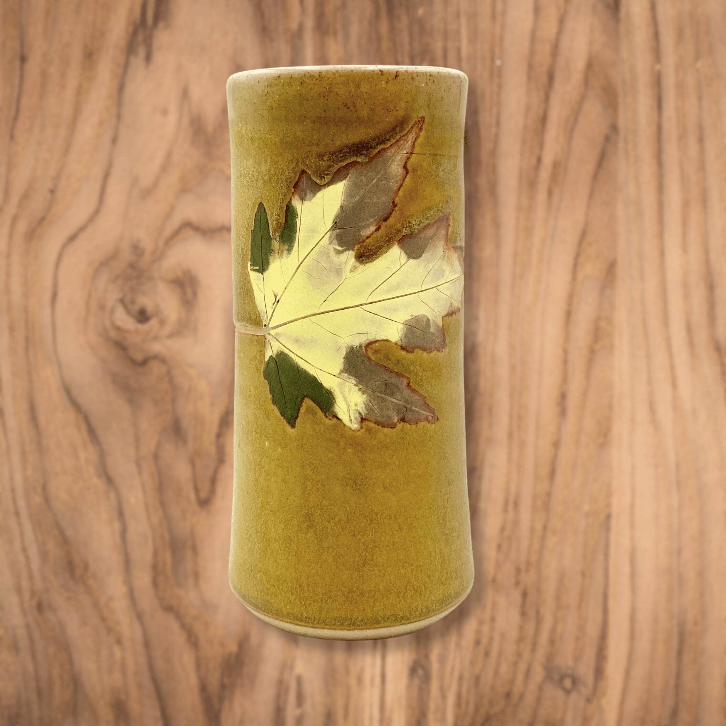 This large tumbler, created by Travis Berning, features a stunning maple leaf pattern.