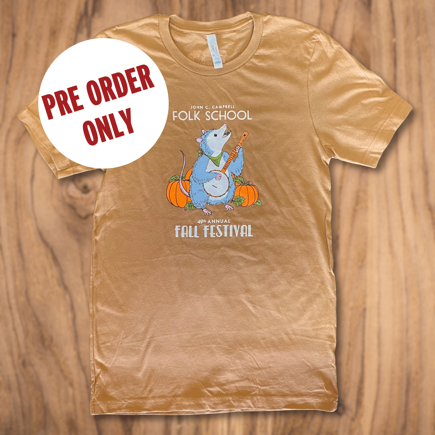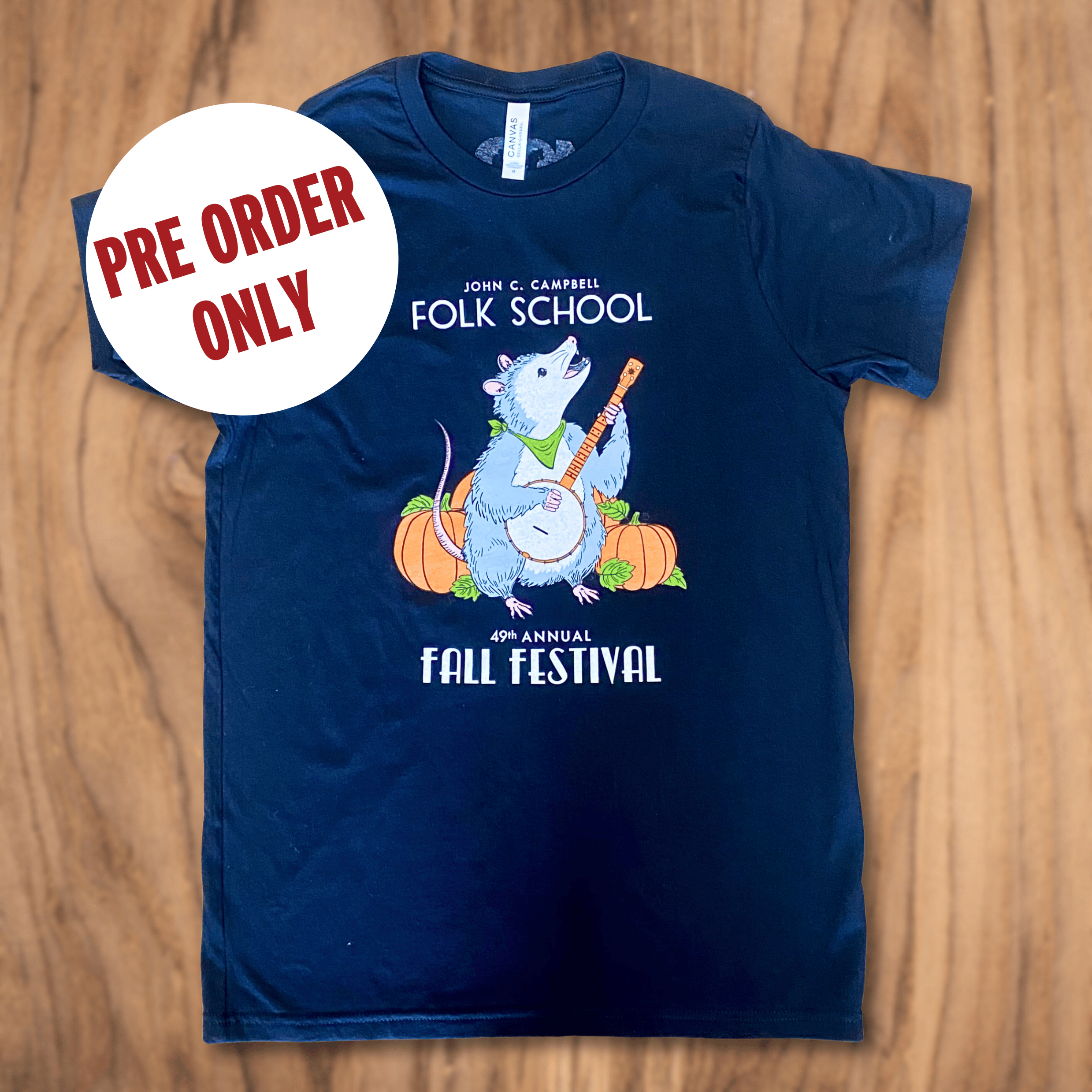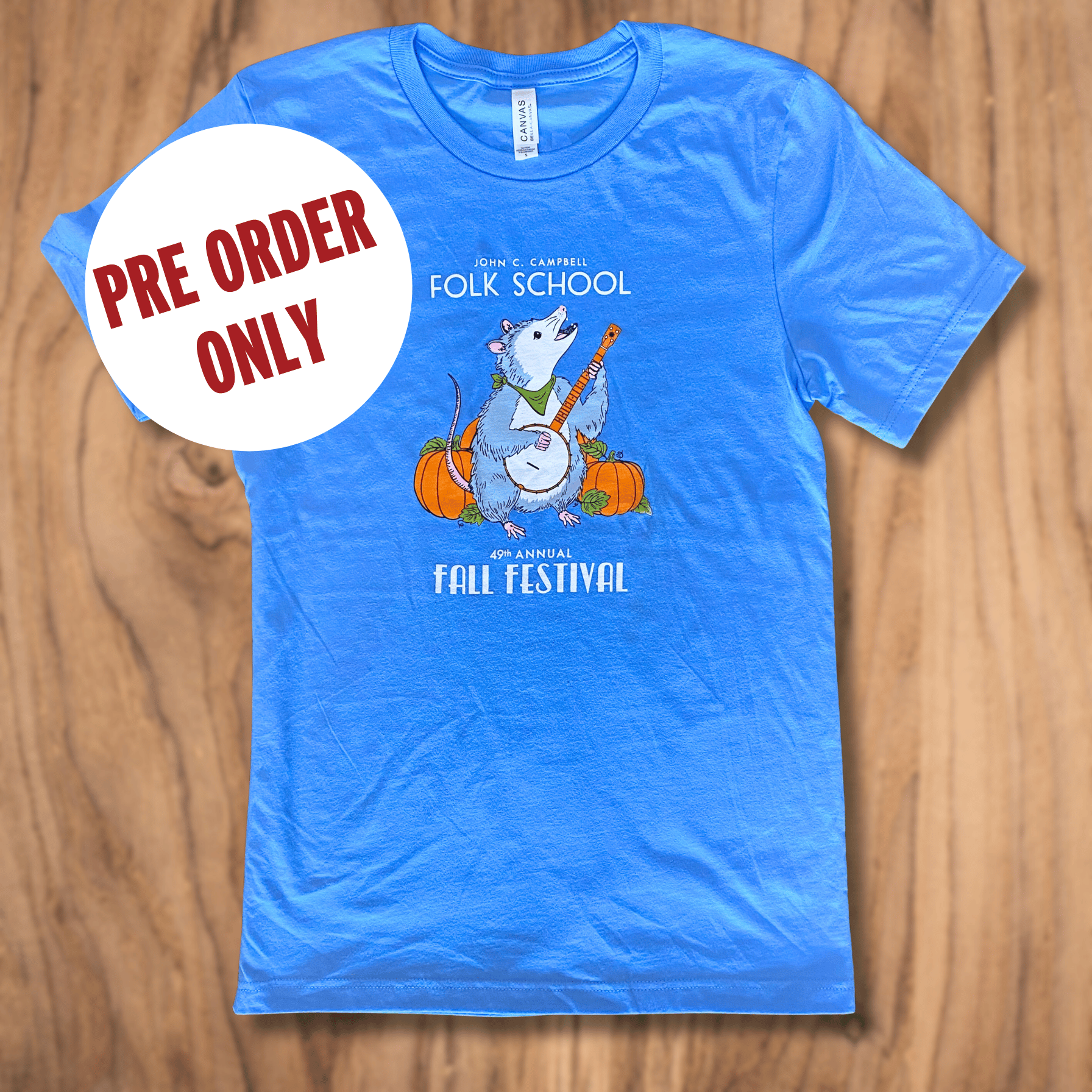 The cute banjo-playing opossum is sure to be a hit, so we are offering the option of pre-ordering. These shirts are unisex, 100% cotton and are offered in three different color options – black, toast and Carolina blue.